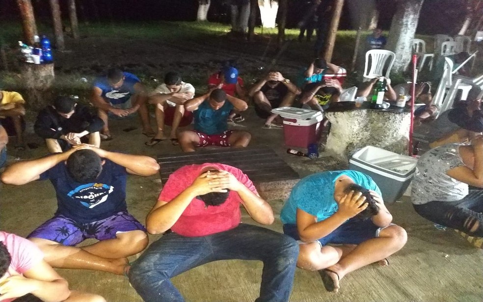 Além da aglomeração, proibida durante a pandemia do novo coronavírus, imagens mostram pessoas sem máscaras de proteção. Grupo participava da festa — Foto: PM/SE/Divulgação Na noite...