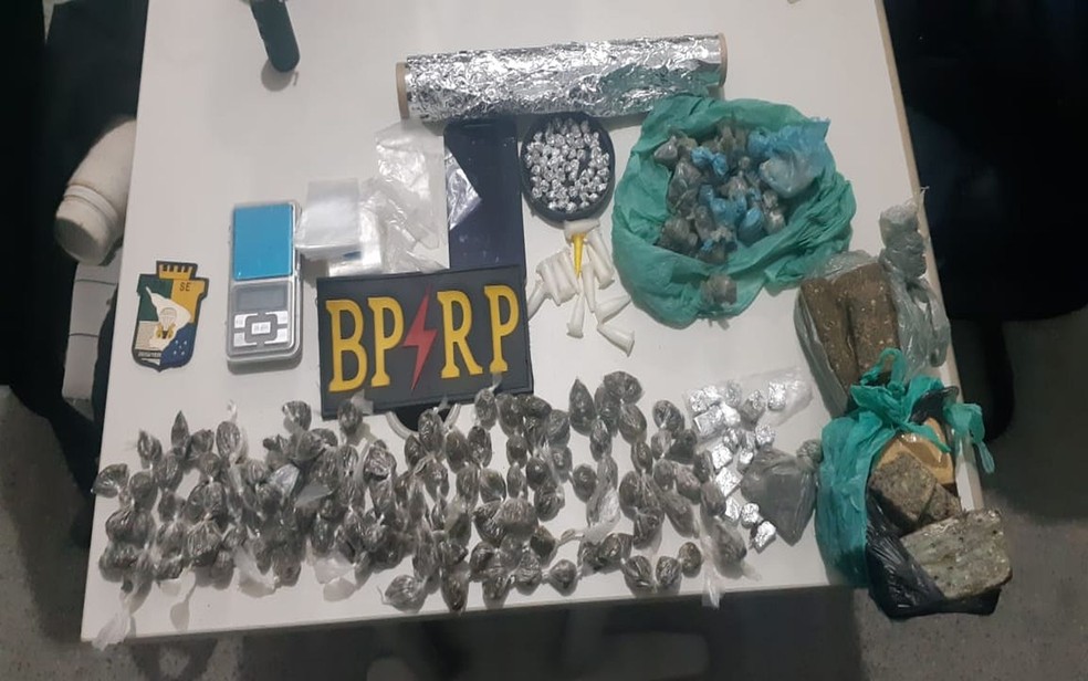 Suspeito estava andando com material na rua quando foi avistado. Homem foi preso com drogas em Laranjeiras (SE) — Foto: BPRP/Divulgação O Batalhão de Radiopatrulha da...