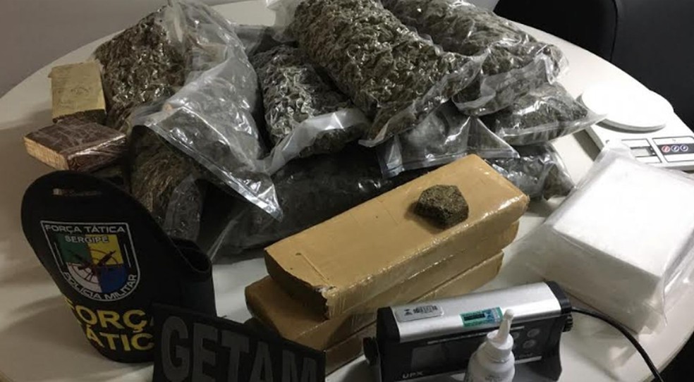 Um dos presos estava foragido da Justiça desde 2001. Material apreendido com os presos — Foto: PM/SE Seis pessoas foram presas, neste sábado (20), durante uma...