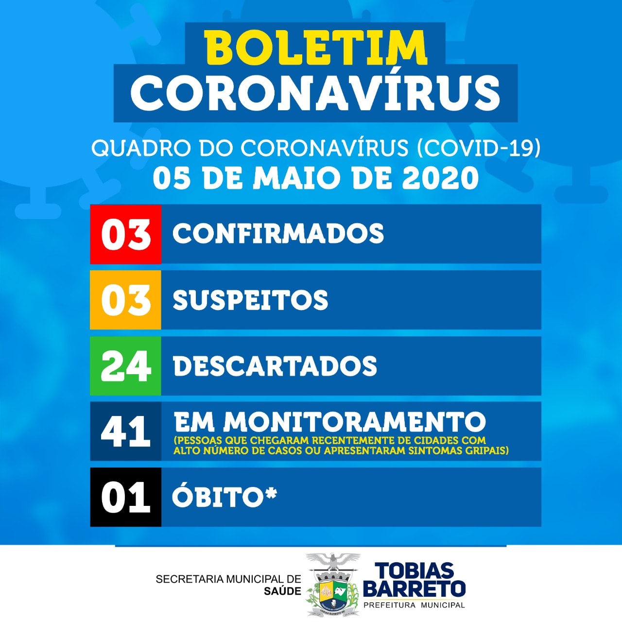 A Secretária Municipal de Saúde confirma o primeiro caso de Coronavírus (Covid-19). Trata-se de uma paciente idosa de 72 anos que estava internada na Unidade de...