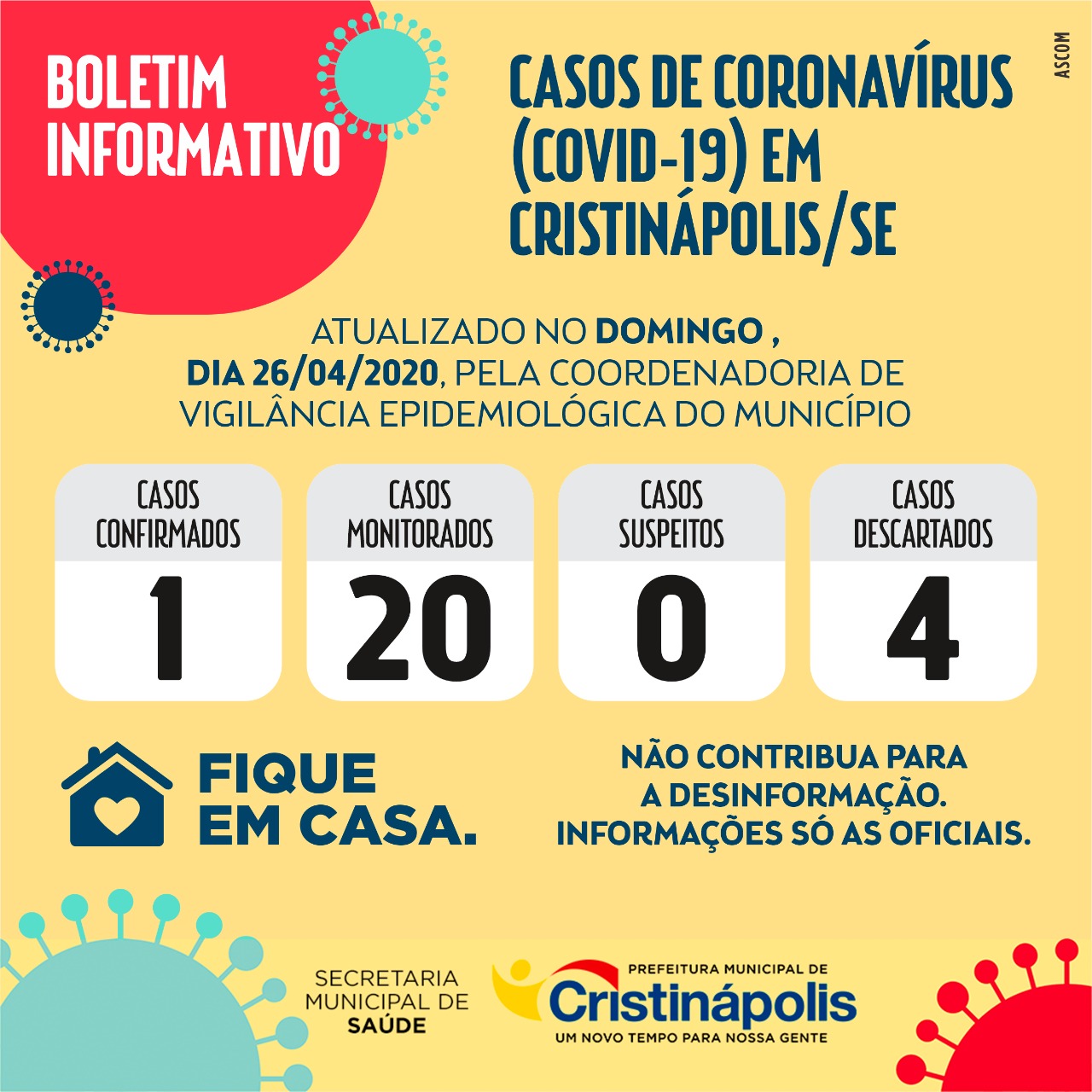 A Vigilância Epidemiológica do município confirmou na tarde deste domingo (26/04), o primeiro caso positivo de coronavírus (Covid-19) em Cristinápolis. Trata-se de um homem de 32...