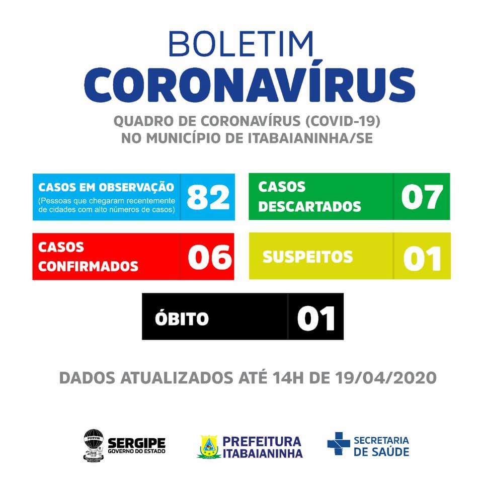 Secretaria de Saúde de Itabaianinha confirma mais 3 casos positivos de Covid-19. Secretaria de Saúde de Itabaianinha confirmou na tarde deste domingo (19/04) mais 3 novos...