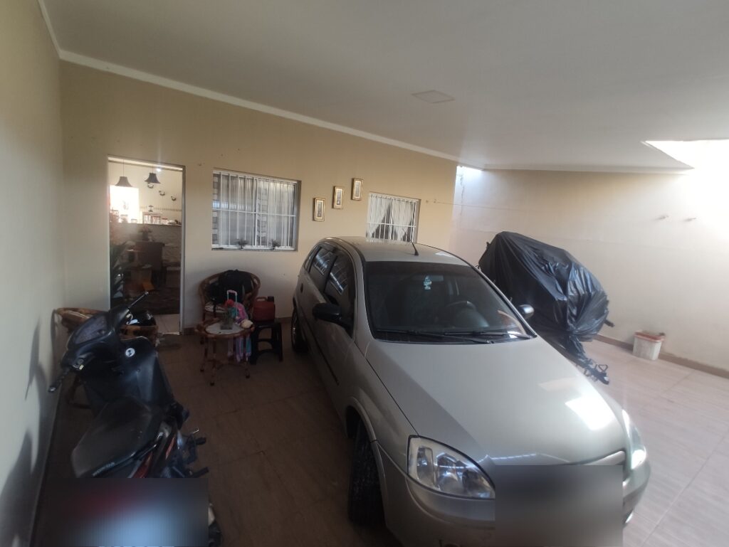 A casa tem dois quartos, sala, cozinha, banheiro, balcão americano, churrasqueira, garagem que cabe três carros, ainda tem mais terreno no quintal caso queira construir mais.